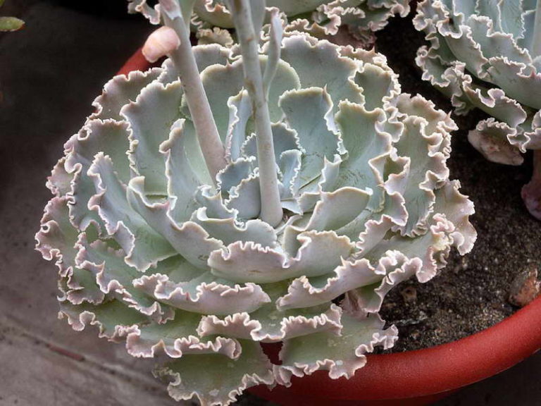Сукулентно растение с розетка с диаметър около 20 см, листа с дължина до 6 см. Характеристика - плака върху листата, поради което растението изглежда почти бяло. Друга разлика от другите сортове са големите, с дължина до 2 см цветя, разположени на широки съцветия с ярко оранжев оттенък.