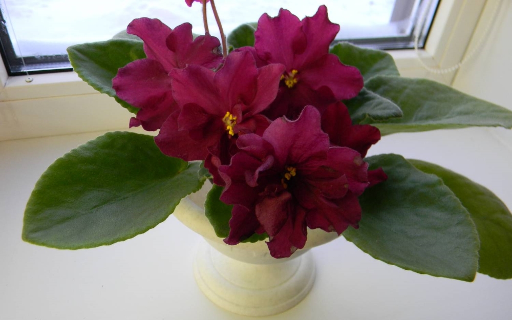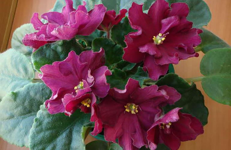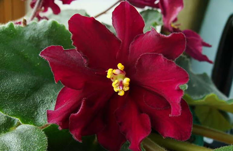 Saintpaulia е красиво луксозно растение с цветя с ярко богат червен оттенък. Различава се с дълъг цъфтеж и високи естетически характеристики.