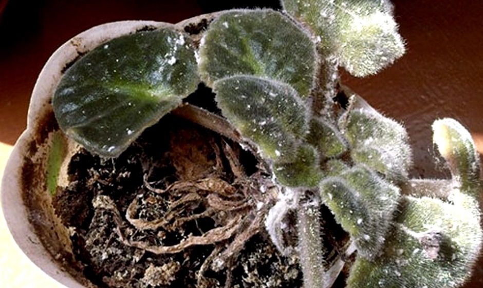 Виолетовите болести се развиват, ако изпитват липса на слънчева светлина или, обратно, са изложени на силна инсолация, поливат се със студена вода и се поставят в стая с ниски температури и висока влажност. Веднага след като се появят първите признаци на увреждане, всички болни листа трябва да бъдат премахнати, растението трябва да бъде трансплантирано в нова саксия с нова почва. Листата се третират с подходящ фунгициден препарат.