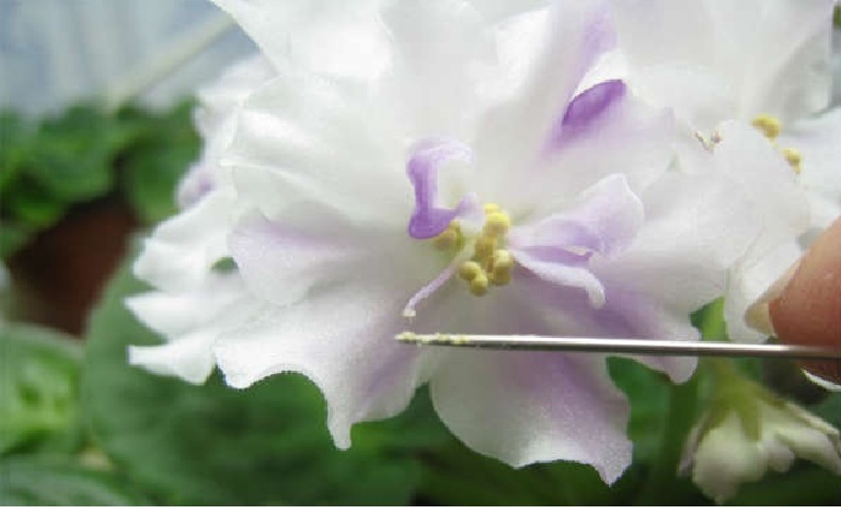 Опрашването на теменужки у дома, използвайки животинската техника, става чрез докосване на едно цвете до друго.