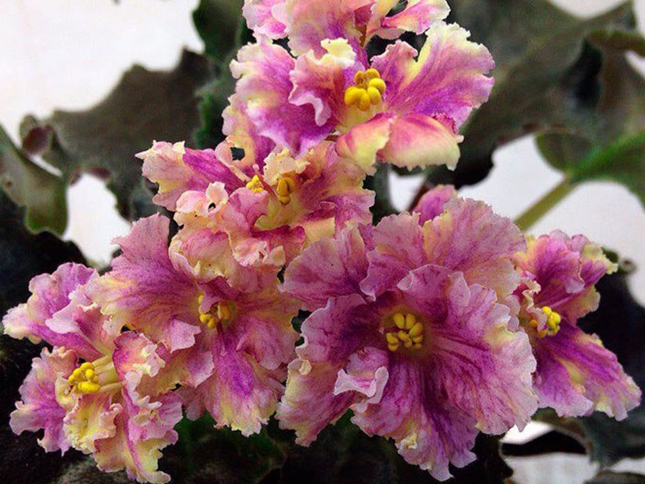 Този компактен сорт Saintpaulias има оригинален цвят на цветя.