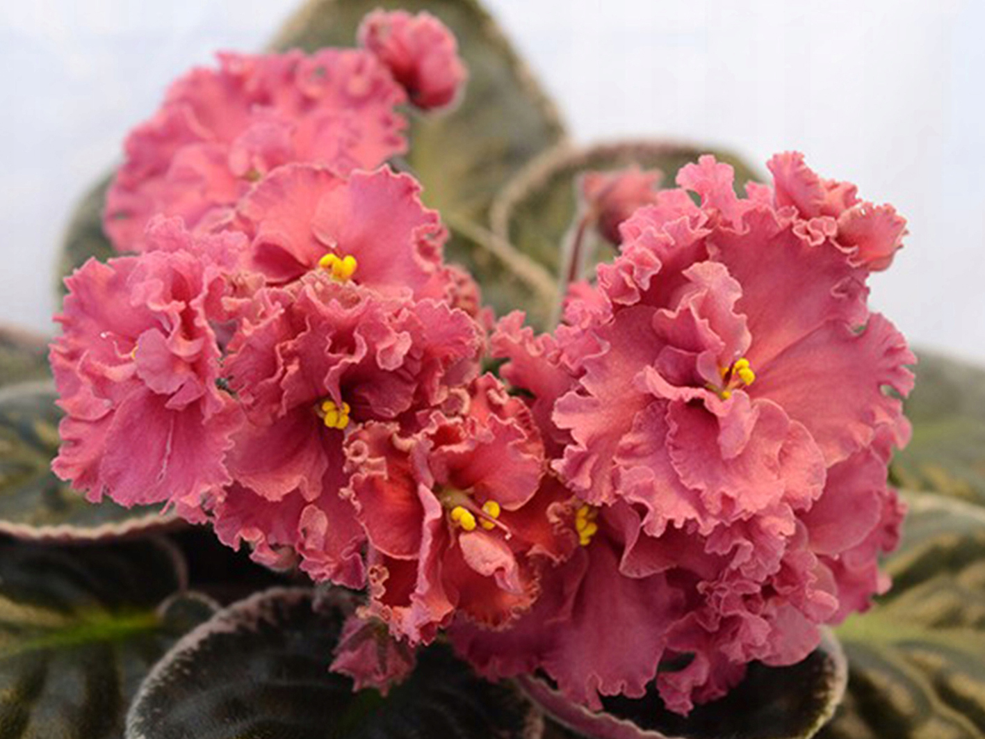 Usambara violet Ness Orange Pekoe има двойни или полу-двойни цветя с дълбока коралова сянка.