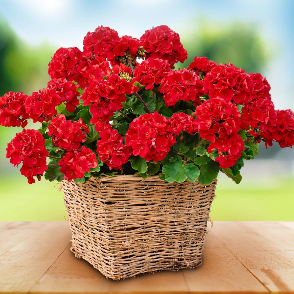 Гераниевите цветя са доста големи по размер и се различават по цвят: в зависимост от вида и сорта, те могат да бъдат лилави, сини, бели или лилави (интересно е, че алената сянка изобщо не се среща). Събрани в гроздовидни съцветия от 1-3 парчета, но по-често се срещат и самотно растящи цветя. Всеки от тях има 5-8 заоблени венчелистчета, които са разположени върху плоска 5-листна чаша.