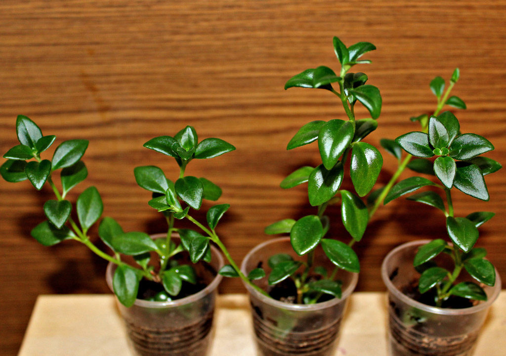След появата на дълги корени, вкорененият резник внимателно се трансплантира в отделен контейнер. За да оформите буен храст, прищипете горната част на издънката, по-късно понякога се отрязват горните 1 или 2 междувъзлия.