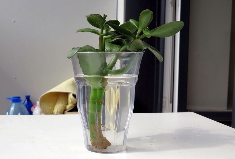 Размножаването и вкореняването на мазна жена чрез резници във вода е както следва: