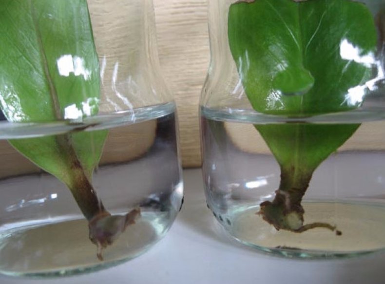- След появата на корените листът се трансплантира в малък контейнер, така че кореновата система да се развива още повече.