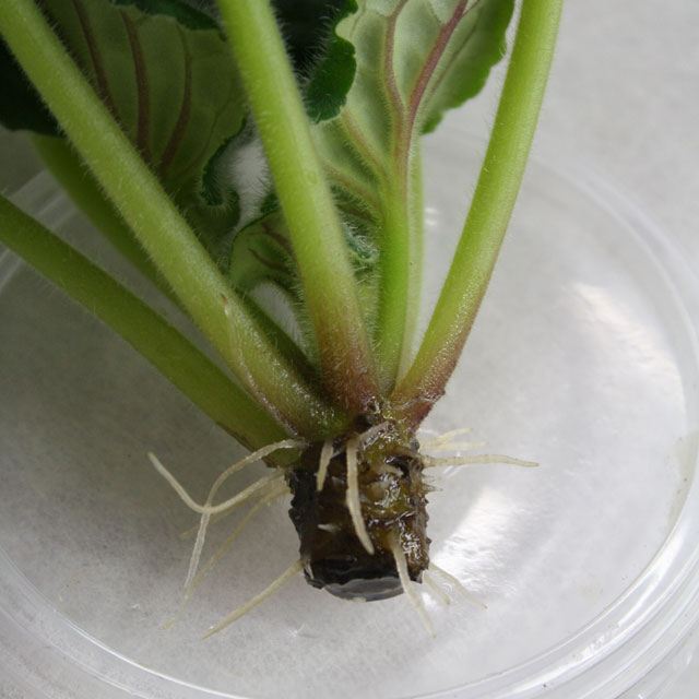 Ако листът лежи дълго време (повече от 5 часа), тогава трябва да се остави да се насити с вода с капка калиев перманганат (2-3 часа). Най-добре е да се използват листа от 2-3 нива на розетка за размножаване. Дръжката се оставя с дължина до 2 см. Ако се използва част от листа, тогава на разрязването се дава 15 минути. суха, веднага разтриване с алкохол.