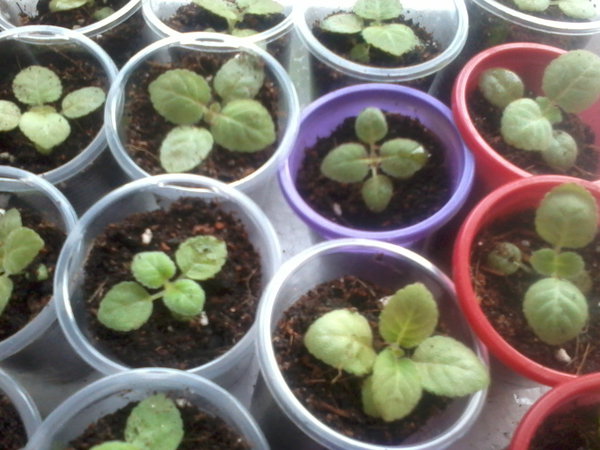 Посадъчният материал е заровен на 1-1,5 см в земята и покрит с прозрачна капачка. В такава оранжерия през следващите 2-3 седмици жизнеспособните части на теменужката ще могат да дадат корени. Ако вземете контейнер с прозрачни стени за кацане, скоро корените ще бъдат ясно различими. Част от стъблото, подобно на стъблото, трябва да дава на деца, които след 2-3 месеца могат да бъдат внимателно засадени в отделни саксии.