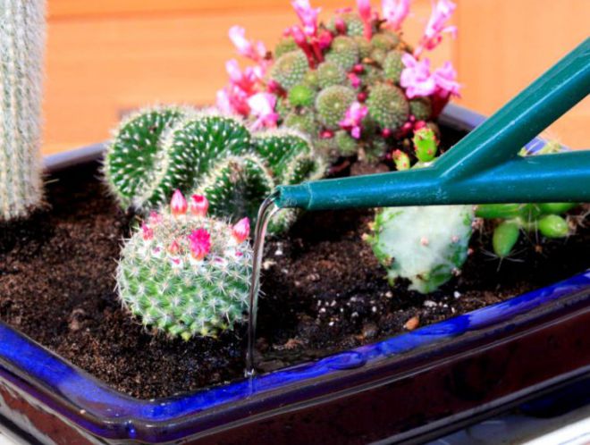 През зимата кактусите са в покой и зимен сън. През този период растенията не се нуждаят от често поливане. Поливането на кактуси струва не повече от веднъж на две седмици и то в малки количества. С настъпването на пролетта количеството поливане постепенно се увеличава, а през лятото се полива доста често (веднъж на 3-4 дни). От октомври поливането трябва отново да бъде ограничено. Водата трябва да се използва само топла и пречистена.