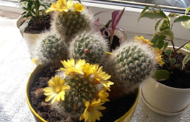 В колекциите на кактусистите има видове кактуси с различни периоди на цъфтеж. Те включват дългопапиларната Mammillaria. Покрита е с множество удължени зърна (зърна) с тъмно зелен цвят. Цъфти в големи лимоненожълти цветя. Mammillaria Zeilman се счита за една от най-разпространените в колекциите кактуси. Има дълго време на цъфтеж. Има и видове, които не бързат да цъфтят.