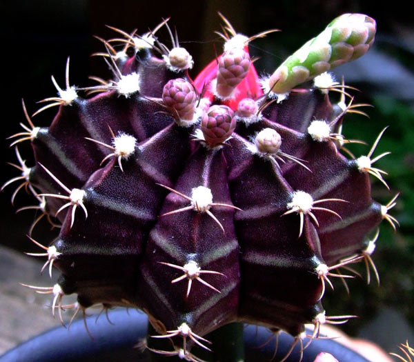 | Cardenasianum gymnocalycium | Нарича се още сферично-колонен. Външно прилича на заоблена колона с височина 20 см. Плътно опушена с множество дълги бодли, повечето от които са наклонени към стъблото. На короната цъфтят ниски (до 5 см) белезникаворозови цветя, едва прозиращи през тръните. |