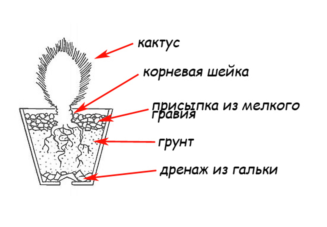 Трябва да отърсите всички остатъци от старата почва от растението, но ако тя е залепнала вътре в грудката, тогава не е нужно да разкъсвате корените. Кактусът се засажда в леко влажна почва. В дъното на саксията се излива дренаж, а отгоре се поставя субстратът. Не е необходимо да се трамбова земята по време на засаждането, тъй като това може да увреди кореновата система на растението. Субстратът се излива върху кореновата шийка, в противен случай кактусът може да започне да гние.