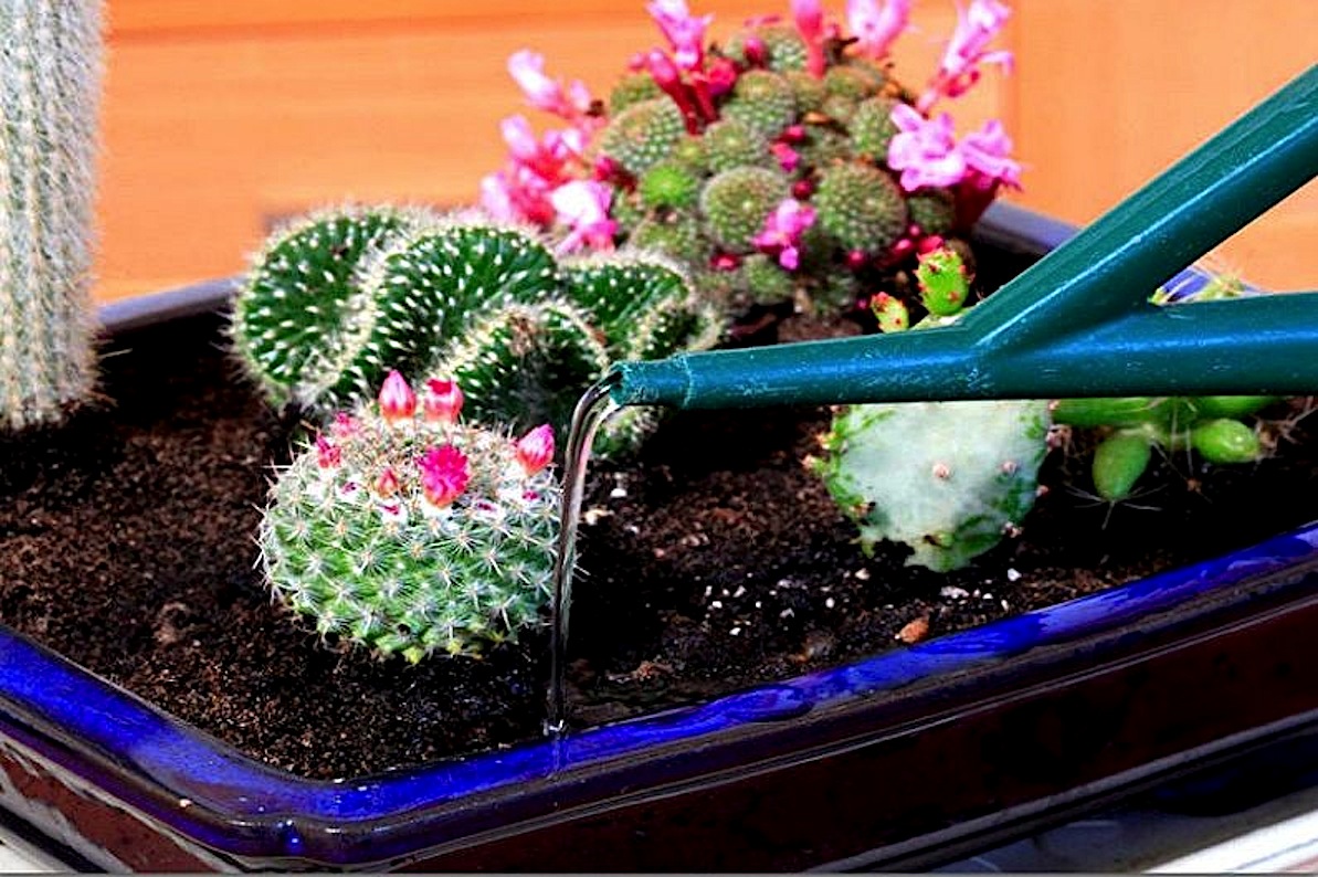 През лятото пустинните кактуси (ксерофити) и триъгълната мутра трябва да се поливат веднъж или два пъти седмично; през зимата един е достатъчен. По-добре е да направите това сутрин, така че до вечерта почвата да има време да изсъхне на дълбочина 2-3 сантиметра.
