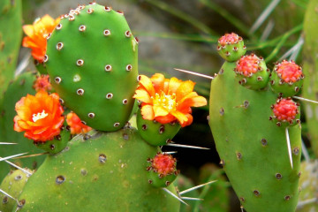 - Малкокосместата бодлива круша е тридесет сантиметрово растение, което е покрито с червени и бели игли. Този кактус е един от най-популярните за декорация на закрито.