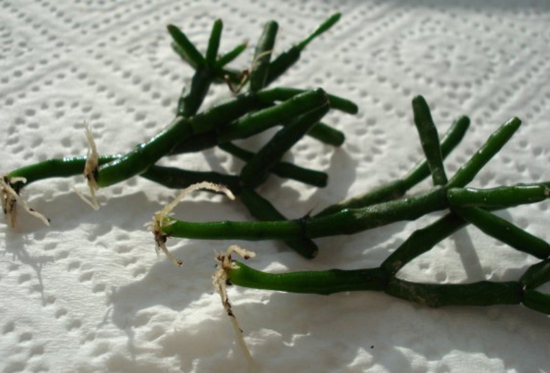 Някои производители ще отрежат стъблото и ще го овъглят с въглен. В този случай вкореняването става по същия начин. Когато се появят нови малки листа, малката хатиора може да бъде трансплантирана на ново място.