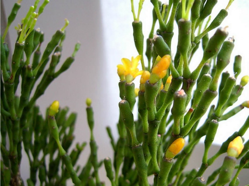 Стайното цвете Hatiora се отличава с необичайна структура на стъблата и красив обилен цъфтеж. Hatiora solyankovidnaya се вписва идеално във вътрешността на всяка стая. Стъблата имат голям брой малки сегменти (с диаметър не повече от 3 mm).