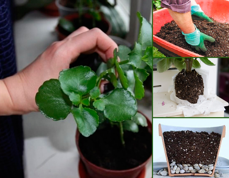 Няма специални изисквания за състава на почвата за растението - то се чувства добре както в леки, така и в тежки субстрати. Но, както казват опитни производители на цветя, оптималният състав на почвата предвижда задължителното добавяне на пясък към нея. Освен това гърнето трябва да има добър дренаж отдолу. За каланхое оптималното ниво на рН е 5,0-6,5. Ако не купите готова смес в магазина, можете сами да приготвите състава. Достатъчно е да се смесват в подходящите пропорции: