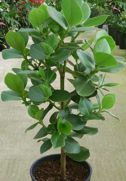 Хетеросексуално вечнозелено растение. Прилича на ниско дърво или храст, по клоните има голям брой зелени листа. Те имат плътна месеста структура, покрита с восъчен цвят. Листата са заоблени, тъмнозелени на цвят.
