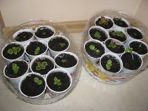 Когато цветята пораснат, те се настаняват в контейнери на разстояние 2 см един от друг. Ако колеусът има две листа, той може да бъде трансплантиран в отделни саксии с диаметър 7 см. След още един месец кълновете се засаждат в контейнер с диаметър 11 см.