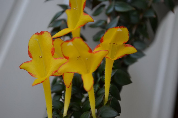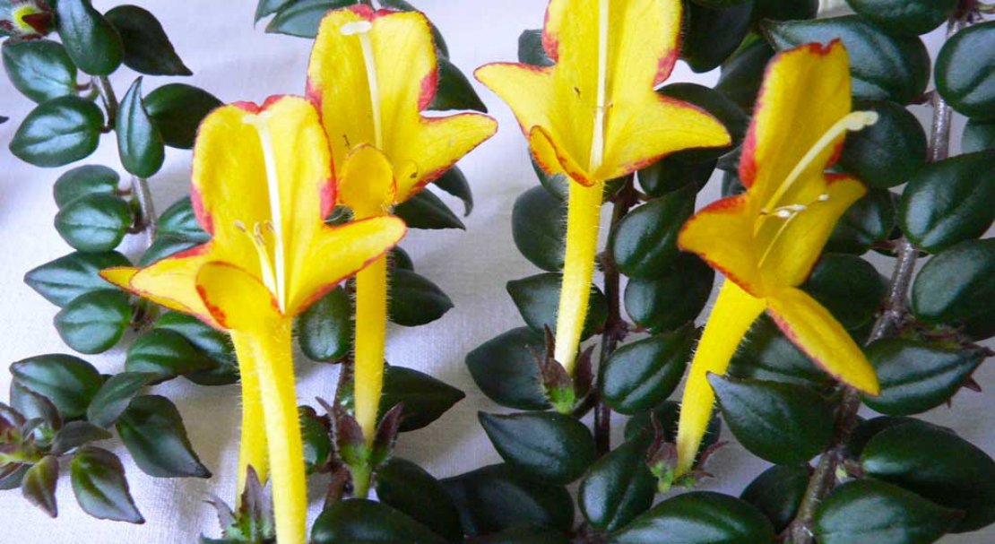 Видове Columnea, донесени от Панама, с издънки до един и половина метра и масивни лози с обилно мъх. Листата са лъскави, стесняващи се към края. Цветовете се образуват на групи от пазвите на листата. Цветът на цветята е червено-оранжев с жълтеникави петна по венчелистчетата.