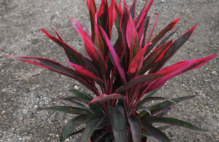 - Трицветният сорт принадлежи към апикалния тип кордилина. На една листна плоча на този храст се комбинират зелени, кремави и розови тонове.