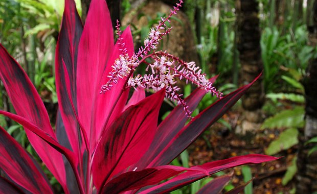 - Кордилина е червена или апикална. Необичайният червен цвят на широките листа на тази палма е хипнотизиращ. При липса на светлина листата му са зелени с червени ивици.