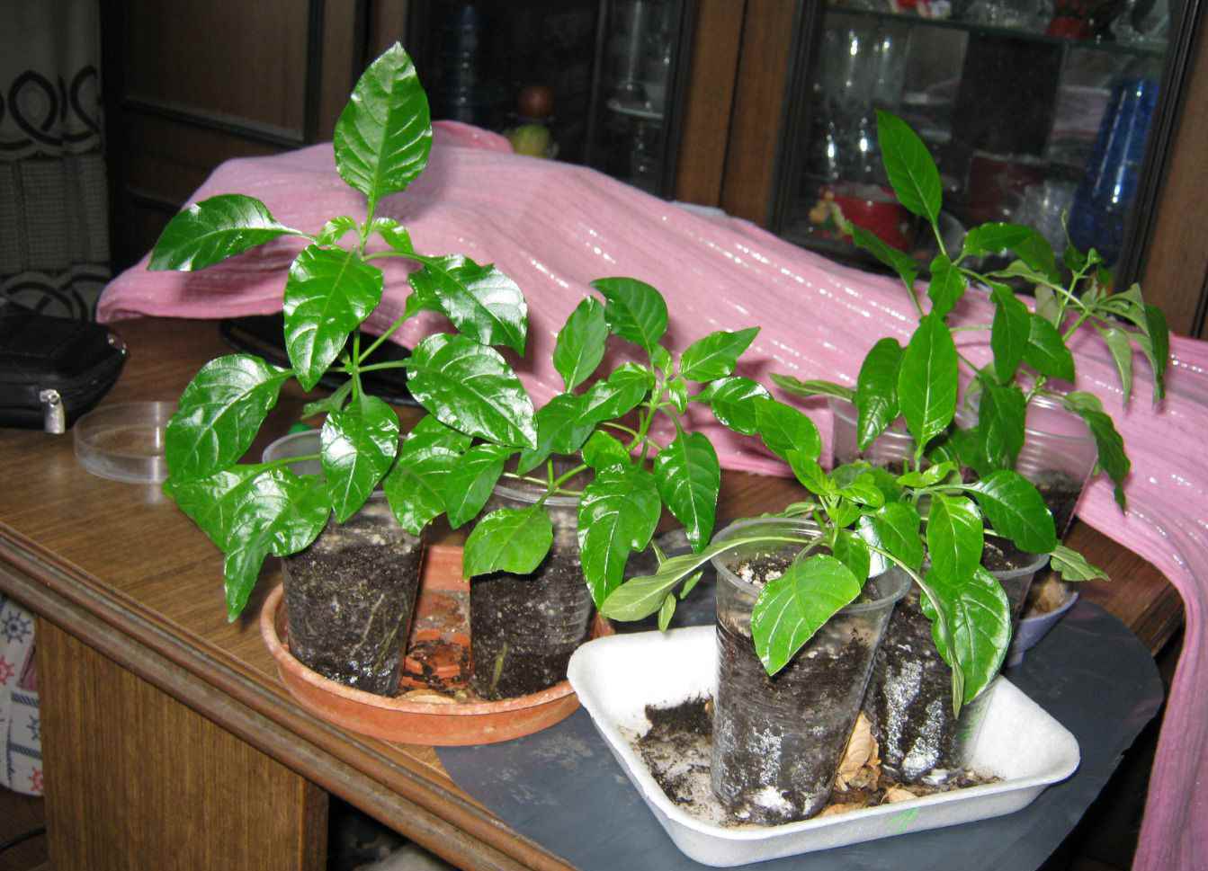 Контейнерът се поставя на добре осветено място с температура + 25 ° C. След 3 седмици корените трябва да се образуват. През това време оранжерията се проветрява периодично и субстратът се навлажнява, ако е необходимо.