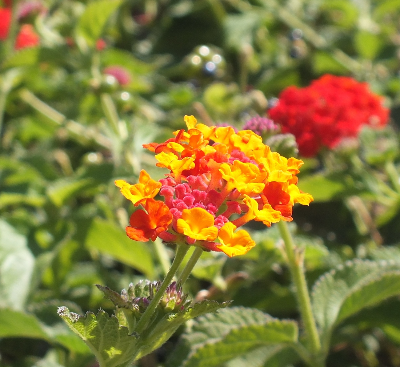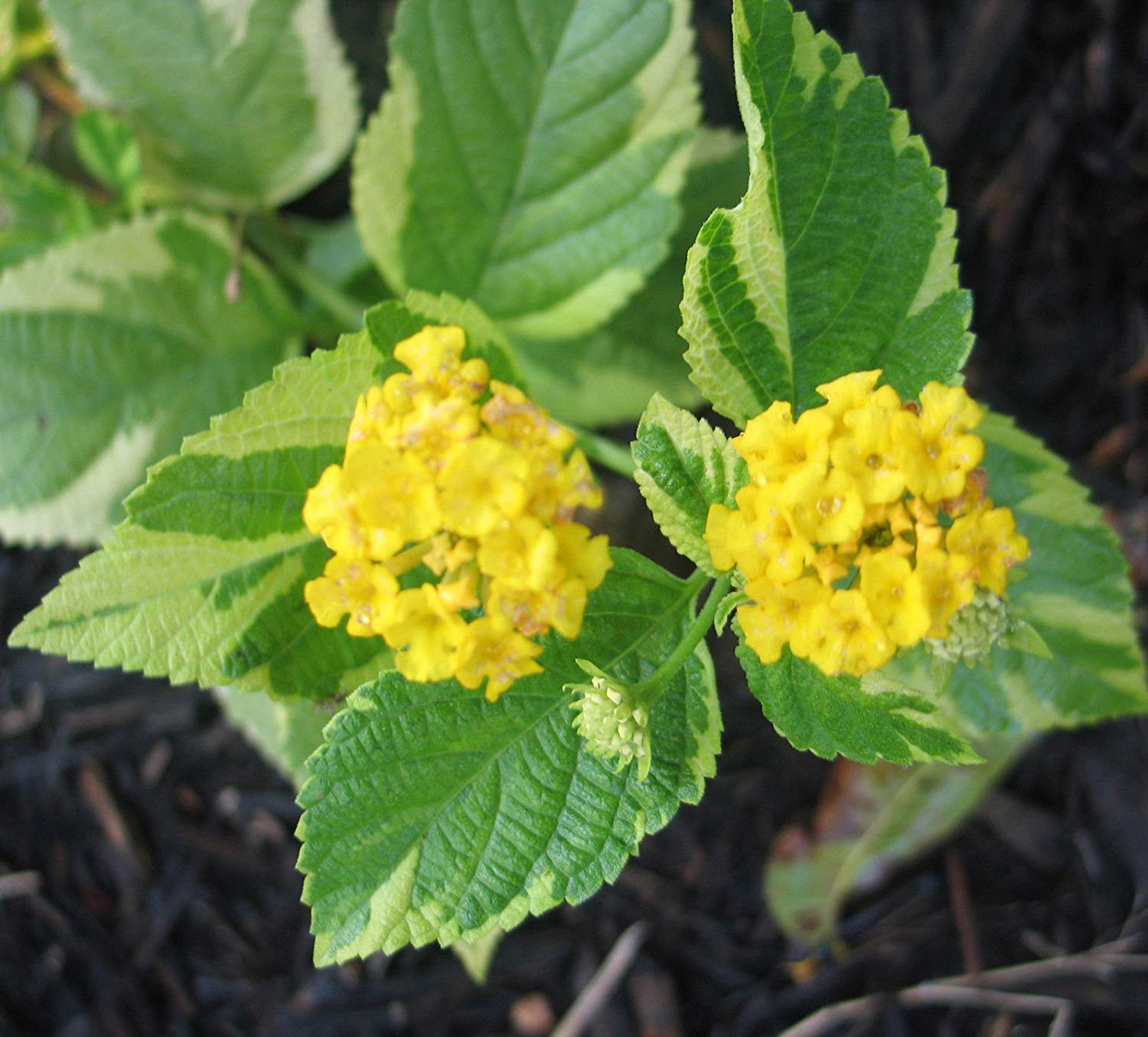 - Лантана бодлива. Храст, висок до 1,5 м. На леторастите има силни бодли. Листата са засадени на дълги дръжки, плочите са наситено зелени, леко опушени отдолу. Ароматът е специфичен.Цветът на цветята варира от жълто до алено;