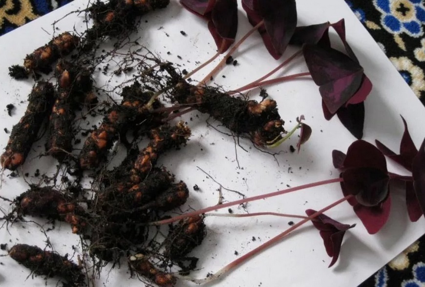 Най-често стайно растение, наречено оксалис, се размножава чрез луковици или грудки, които растат близо до старото коренище.