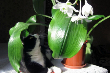 Привлича вниманието с големи бели цветя с жълти тичинки. Не се препоръчва за отглеждане в къща, където има деца - някои части на растението съдържат токсични вещества - алкалоиди. Луковиците от китайския сорт имат форма на редовен лук.