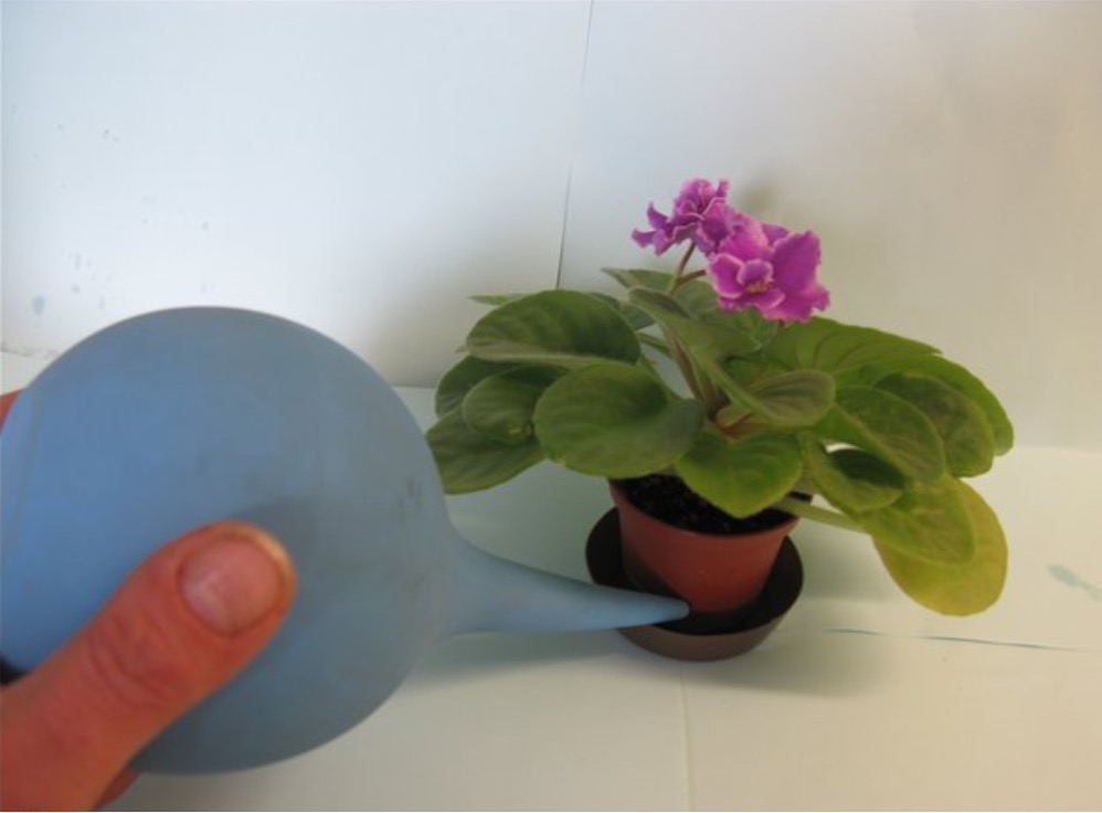 При поливане поток от вода се насочва към ръба на саксията, така че да не пада върху долния ред листа.