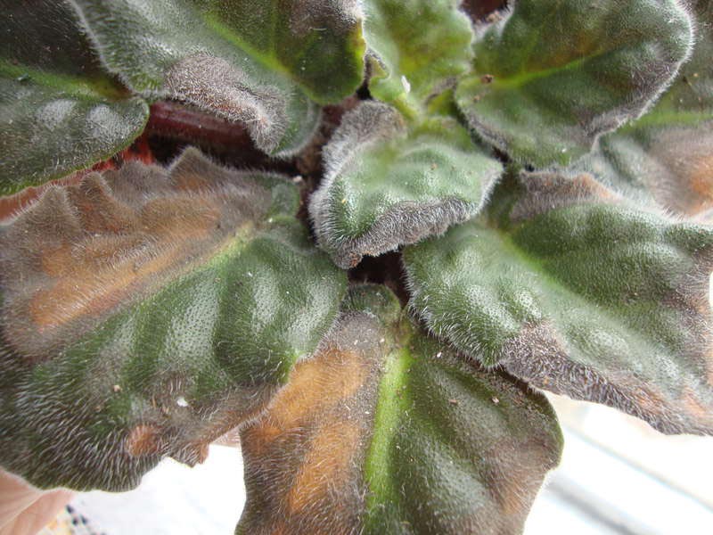 - Изгаряния по листата (жълти петна по листата). Този проблем се появява в резултат на пряка слънчева светлина върху растението. Повредените листа трябва да бъдат отрязани. За теменужки изберете ново място, защитено от парещото слънце.