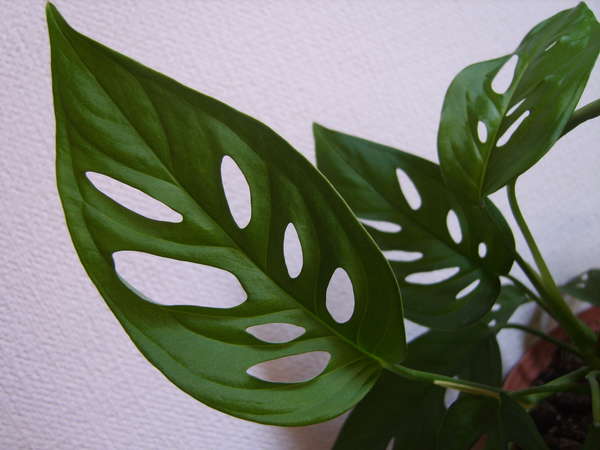 Растението монстера прилича на многогодишна тревиста лоза, с големи стъбла и много широки листа, върху които се образуват разфасовки, докато растат. Младите листа растат непокътнати, с годините по тях се образуват дупки, а до по-голяма възраст те са изпъстрени напълно с тях. У дома листата на растението растат средно с дължина около 35 см, но понякога те са много по-големи.