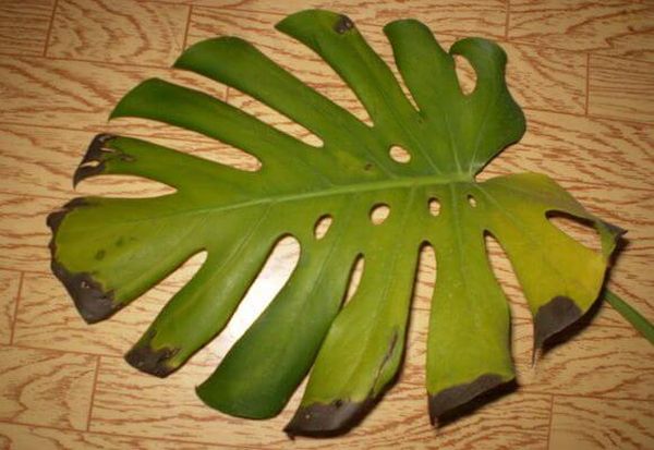 Листата на Монстера се нуждаят от постоянно пръскане, избърсване и полиране. Ако през зимата растението стои близо до отоплителни уреди, тогава го избърсвайте по-често, така че върховете на листата да не изсъхнат.