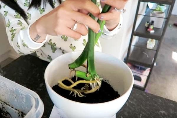 Като начало е препоръчително да се намерят въздушни корени. Неопитен производител може да обърка пресните стъбла с тях. Въздушните корени се образуват по стъблата в зависимост от растежа на цветето. Те растат предимно до листата, имат дървесна структура. Те ще бъдат светлокафяви на цвят. Често тези корени дори растат около саксията.
