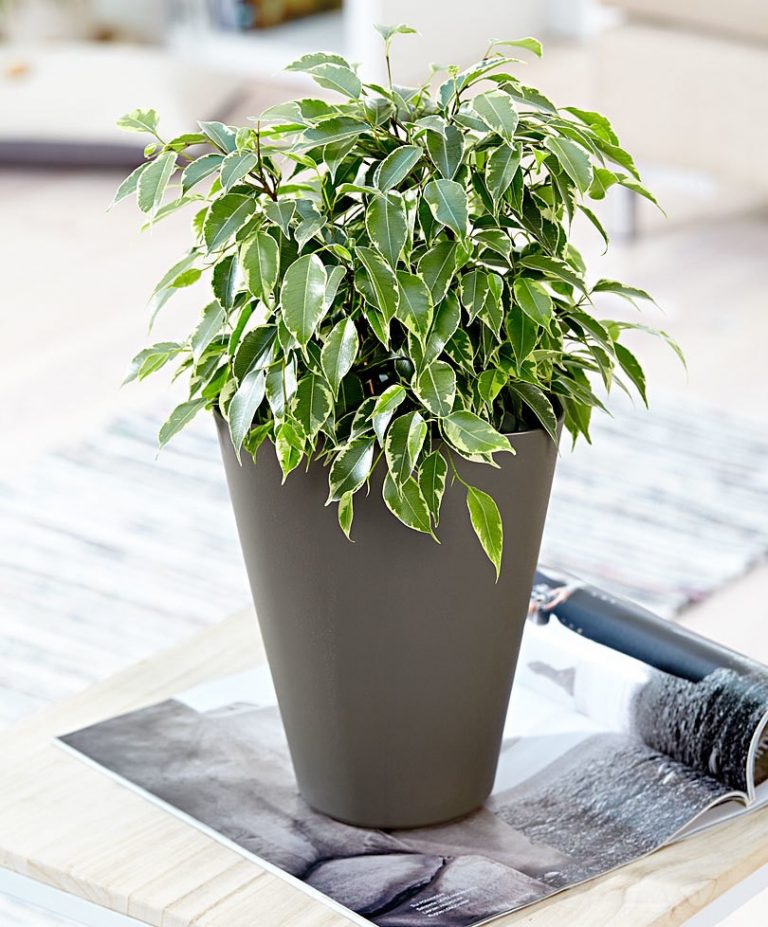 Всекидневната ще изглежда много по-привлекателна, ако поставите саксия с фикус в нея. Благоприятната атмосфера, създадена от цветето, ще настрои гостите за приятно забавление.