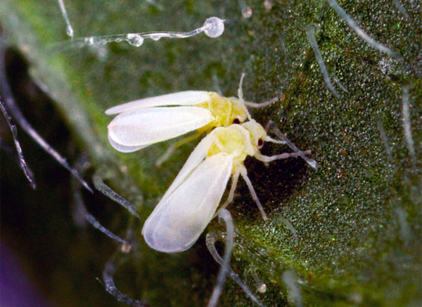 - белокрилките са насекоми с дължина 2 мм, имат крила и летят между листата, снасят яйца от долната страна на листа;