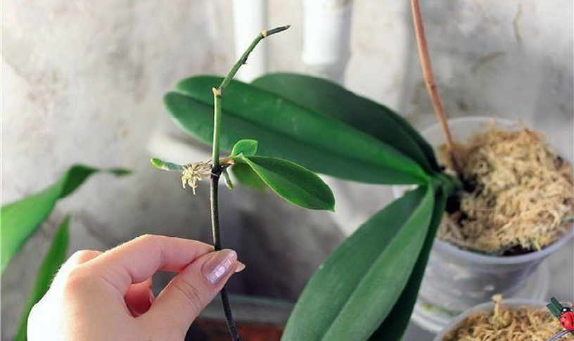 Размножаването с въздушни корени е възможно, при условие че те са на разположение в допълнение към корените и пънчето. Случва се по някаква причина орхидеята да хвърли листата си и да остане грозен пън, който мнозина изхвърлят. Не бързайте. Можете да опитате да използвате останалата част като посадъчен материал, да съживите орхидеята от останалите корени. За това пън с корени се засажда в саксия с пръст.