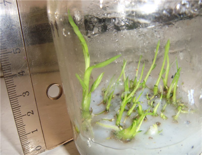 В дъното на чашите се поставя дренаж, след което се изсипва почва. След това в тях внимателно се засаждат малки орхидеи. Отначало кълновете не се нуждаят от поливане. Леко се напръскват, за да се поддържа необходимата почвена влага.
