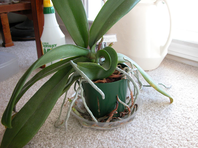 - Кореновата система не получава достатъчно светлина. Тъй като корените на цветето участват във фотосинтезата, препоръчително е да го засадите в прозрачна пластмасова саксия.