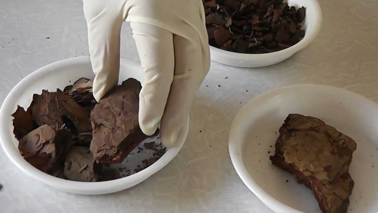 Преди да съберете различни парчета за почвата, трябва да погледнете субстрата на вашите растения. Това ще ви позволи да разберете какъв вид кора е необходима за орхидея. Не е нужно да събирате големи парчета (те ще трябва да бъдат смачкани), имате нужда от малки фрагменти от 1 до 2 cm.