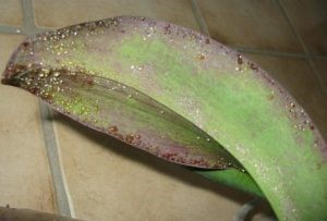 Домашно отглежданата орхидея е най-капризното растение. Затова трябва внимателно да се гледа, за да се постигне добър цъфтеж и липса на различни болести. Дори ако на листата се появят леки капки или цъфтеж, е необходимо незабавно да промените температурата и влажността в помещението, да премахнете ярка слънчева светлина.