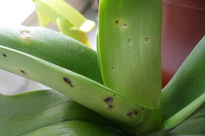 Ако при пръскане на орхидеята не избършете листата и не отстраните водата, която се задържа в пазвите на листата, те започват да гният.