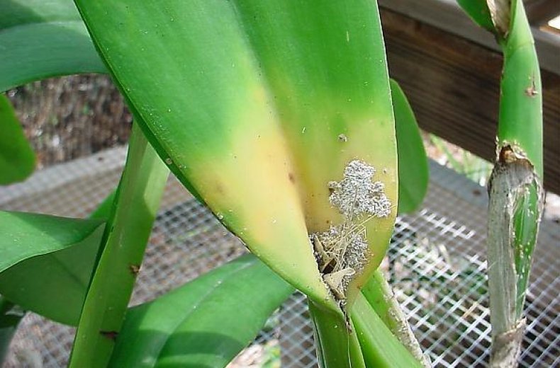 Причината за лепкавите капки върху листата на орхидеите могат да бъдат външни прояви на вредители: