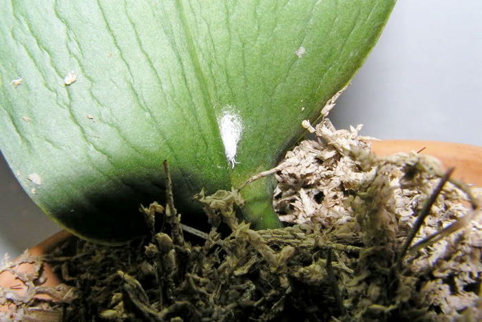 Ако на дъното на листа се появи вискозна и лепкава плака, това е сигнал за собственика на орхидеята. Условията на задържане не са подходящи за Phalaenopsis или вредителите са се заселили по леторастите. Ако не предприемете никакви мерки, цветето може да умре. Растението трябва незабавно да бъде изолирано от другите.