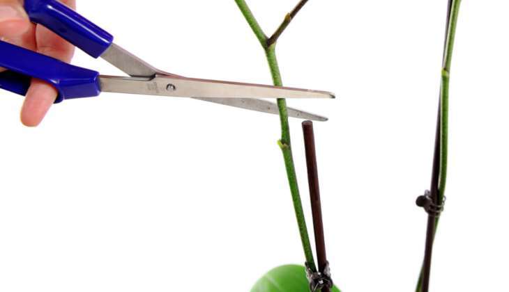 Подрязването трябва да се извърши над пъпката, защото дръжката на среза ще започне да изсъхва. Така че, ако го отрежете точно в близост до бъбрека, съществува риск от изсушаване (а именно, вероятно от него ще излезе нова стрелка).