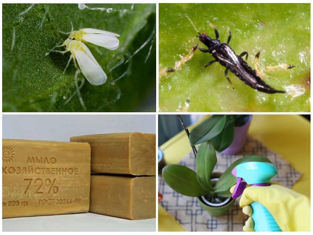 За да контролирате ефективно вредителите, ще трябва да вземете предвид вида насекомо. Във всеки случай орхидеята се измива под течаща вода, като ръчно премахва паразитите от нея. В този случай можете да използвате сапунени разтвори.