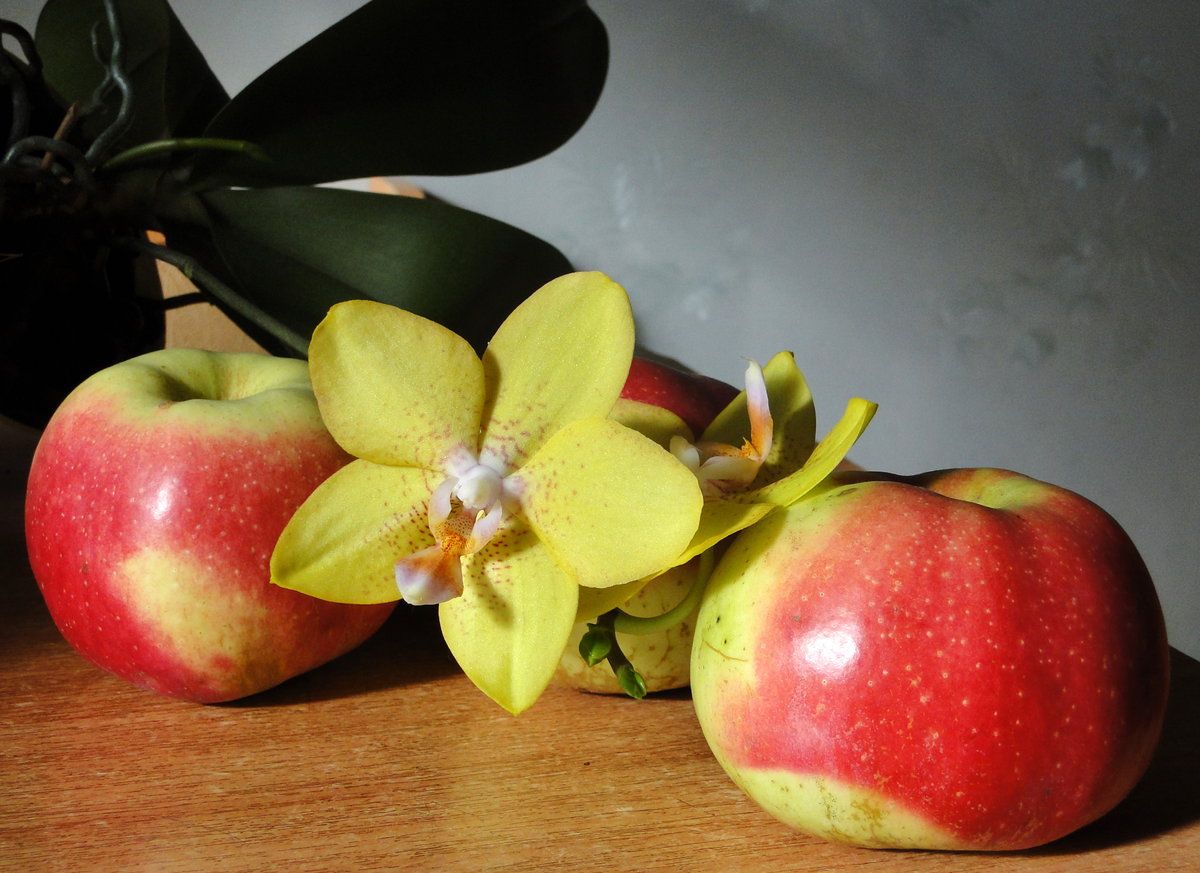Цветарят трябва да обърне специално внимание на съседите на своя домашен любимец. Факт е, че някои плодове отделят органично вещество от класа на алкените - етилен. Съединението има отрицателен ефект върху тялото на орхидеята. В резултат на това дръжките могат да изчезнат.