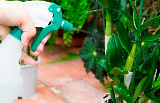 - Необходимо е равномерно да се обработят листата от горната и долната страна. Въздушните корени се напръскват само леко.