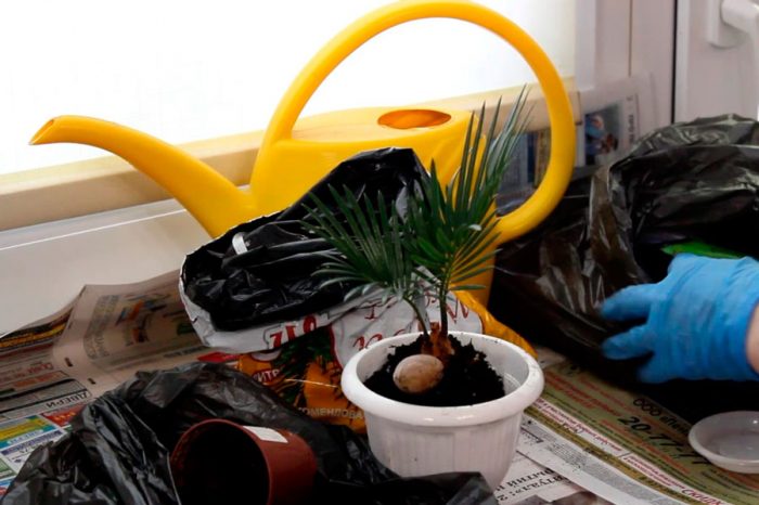 - След 1-2 месеца първото кълно ще се появи на семето, то ще започне да освобождава първата листна плоча. Когато това се случи, той може да бъде трансплантиран в специална почва, подходяща за възрастни палми.